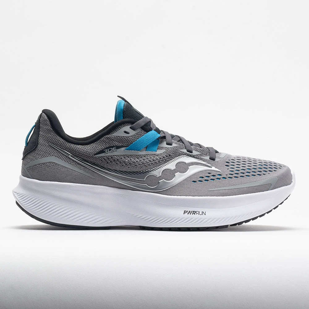 Get a smooth roll right out of the gate in the Saucony Ride 15! This go-to neutral trainer welcomes a full overhaul, with softer cushioning, less weight, and a springy response. Newly formulated PWRRUN foam adds 3mm of soft cushioning with an ounce less weight. Decoupled grooves on the outsole deliver smooth transitions, while strategically placed rubber adds durability for long distances. Soft, light and secure, the Saucony Ride 15 is a daily runner’s dream!